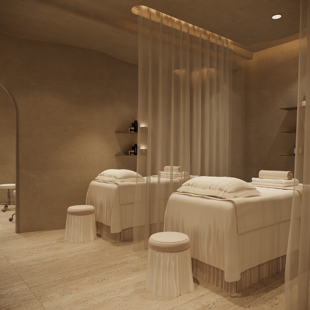 Spa mini hiện đại – luxury – Nội thất cao cấp, ánh sáng đèn led tinh tế, phù hợp với khách hàng cao cấp.